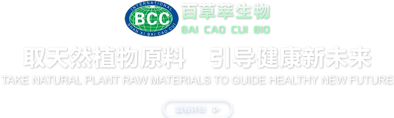 陜西百草萃生物科技有限公司,位于陜西省咸陽市秦都區(qū)濱河西路1號大秦御港城,公司成立于1996年,主要從事天然植物種植、研發(fā)、生產(chǎn)、加工、銷售為一體的高科技企業(yè)。主營醫(yī)藥原料、保健品原料、化妝品原料,精細化工原料。公司致力于人類健康保護事業(yè)“ 以科技為動力,以質(zhì)量求生存” 的本質(zhì),依托陜西高新科技技術(shù)人才和科研優(yōu)勢,已形成多學科、全方位、高層次的技術(shù)管理精英團隊。充分利用秦巴山區(qū)的天然藥物資源,歷經(jīng)多年發(fā)展為打造百草萃生物品牌奠定了基礎。